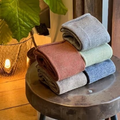 上質なWOOL糸をたっぷり使用した肉厚でぬくぬくの温かさ。