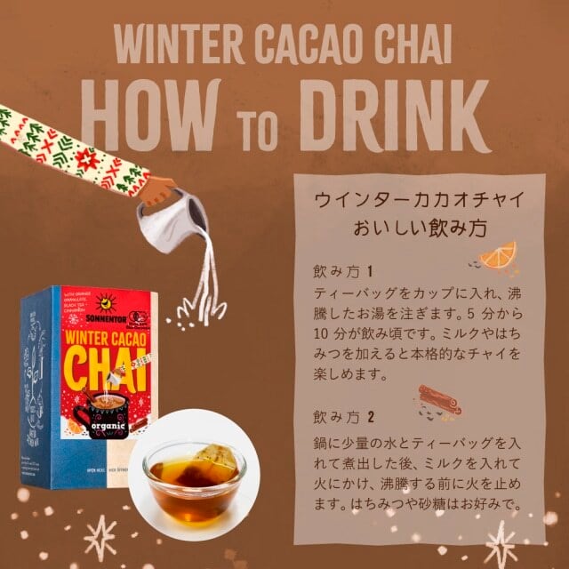 ・有機カカオの殻に紅茶とスパイスをブレンド