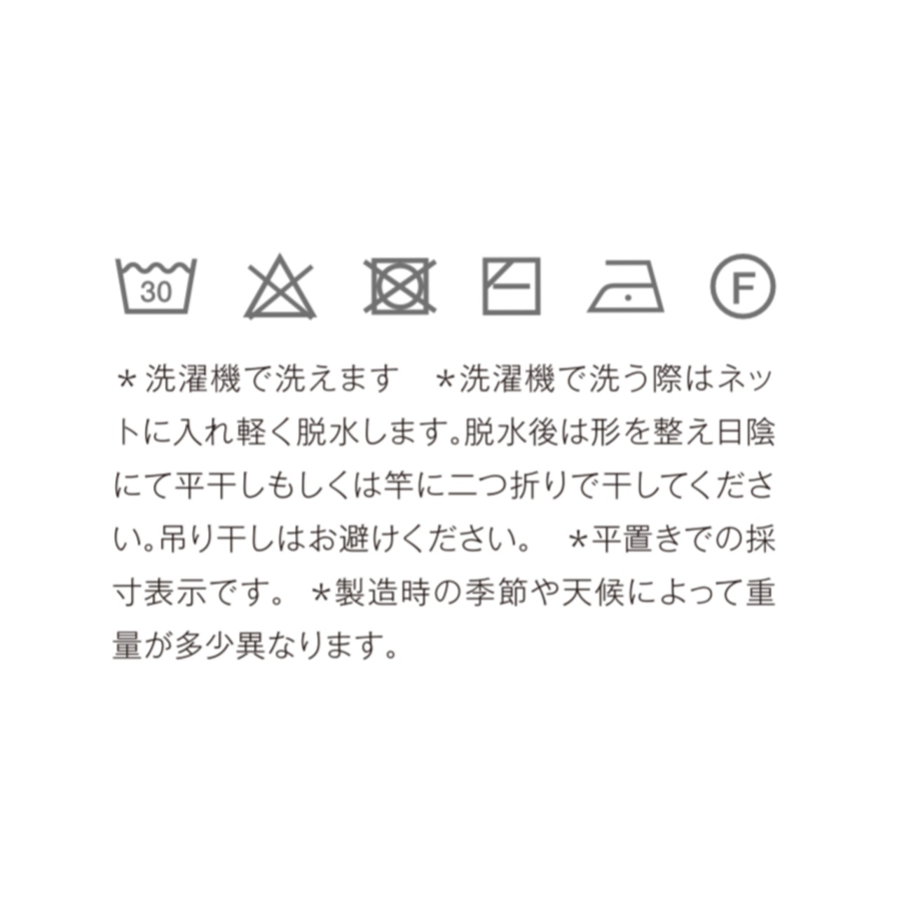 日陰にて平干しもしくは竿に二つ折りで干してください。