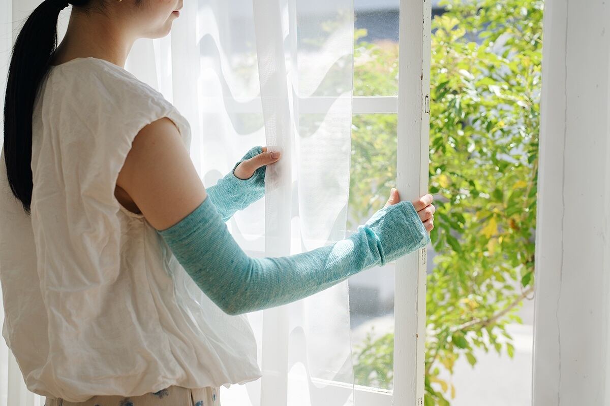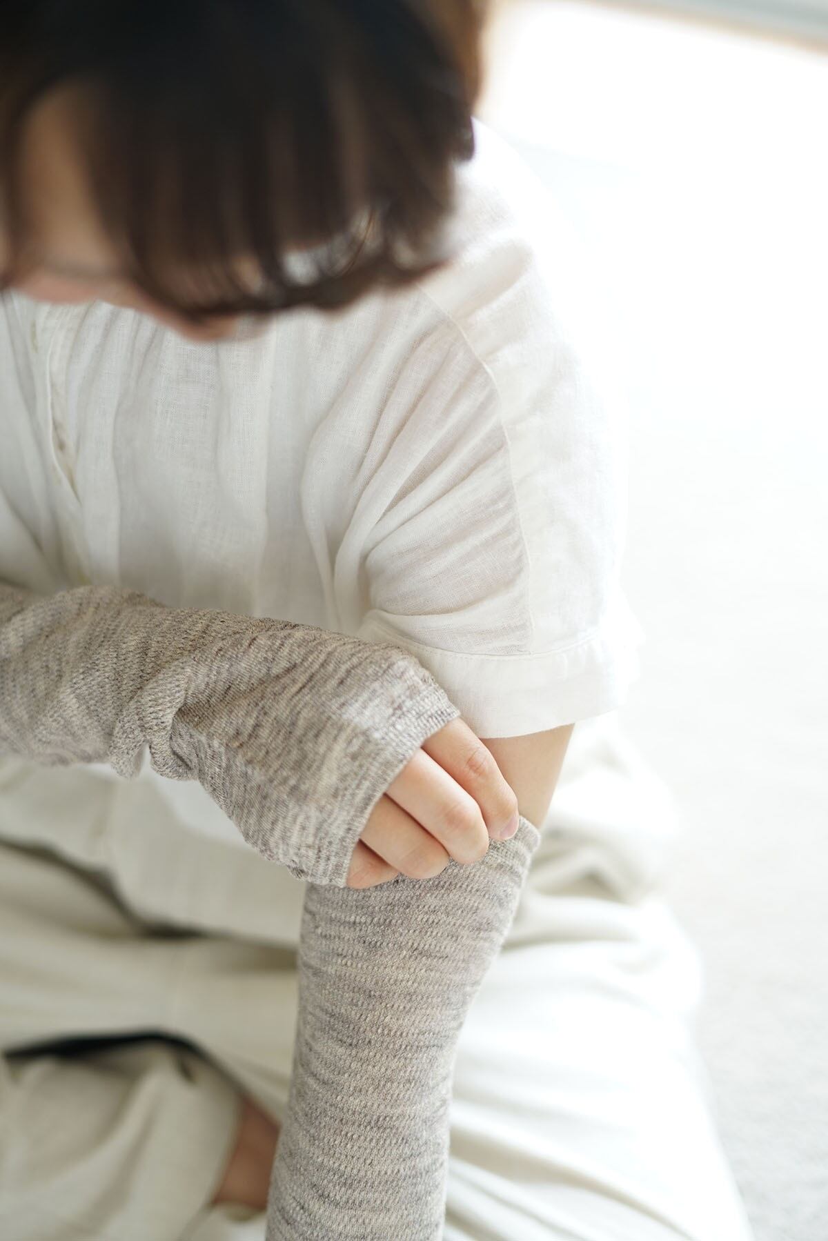 「リネン」をメッシュ編みにしたアームカバーです。
