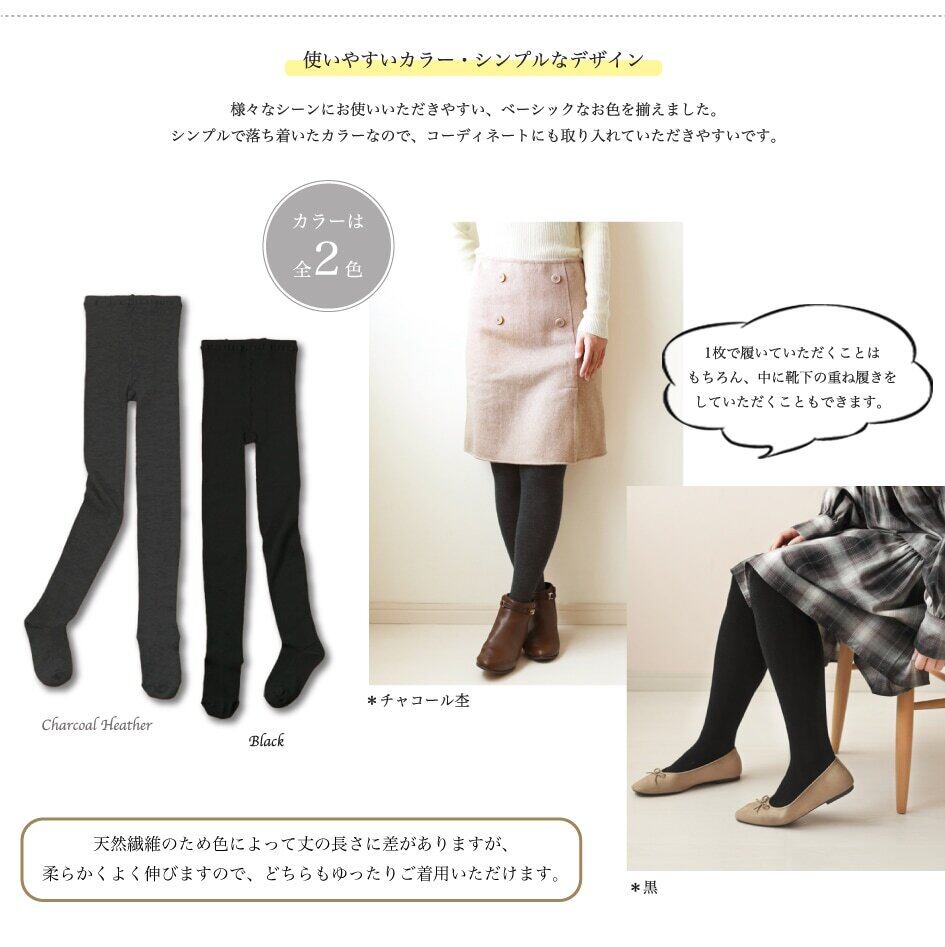 滑らかな風合いのメリノウールを使ったタイツです